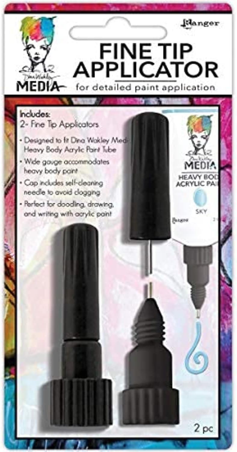This package contains Dina Wakley Fine Tip Applicators, two fine tip applicators with caps that include self-cleaning needles to avoid clogging.