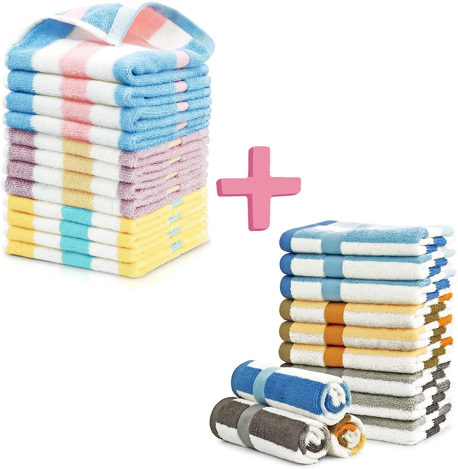 | Style | Washcloths 24 Pack 6-Color Striped Bundle |