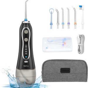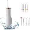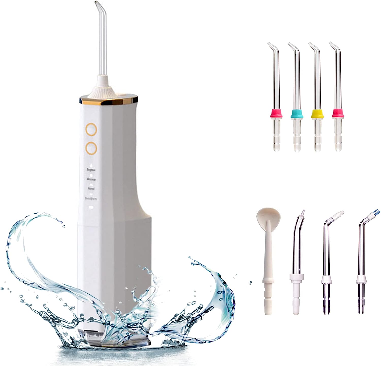 Water Flosser Professional Portable – YAYISHENG Dental Oral Irrigator 4 Modes Large Capacity 300ml Detachable Tank, 8 Tips, Adjustable IPX7Waterproof & Rechargeable , White