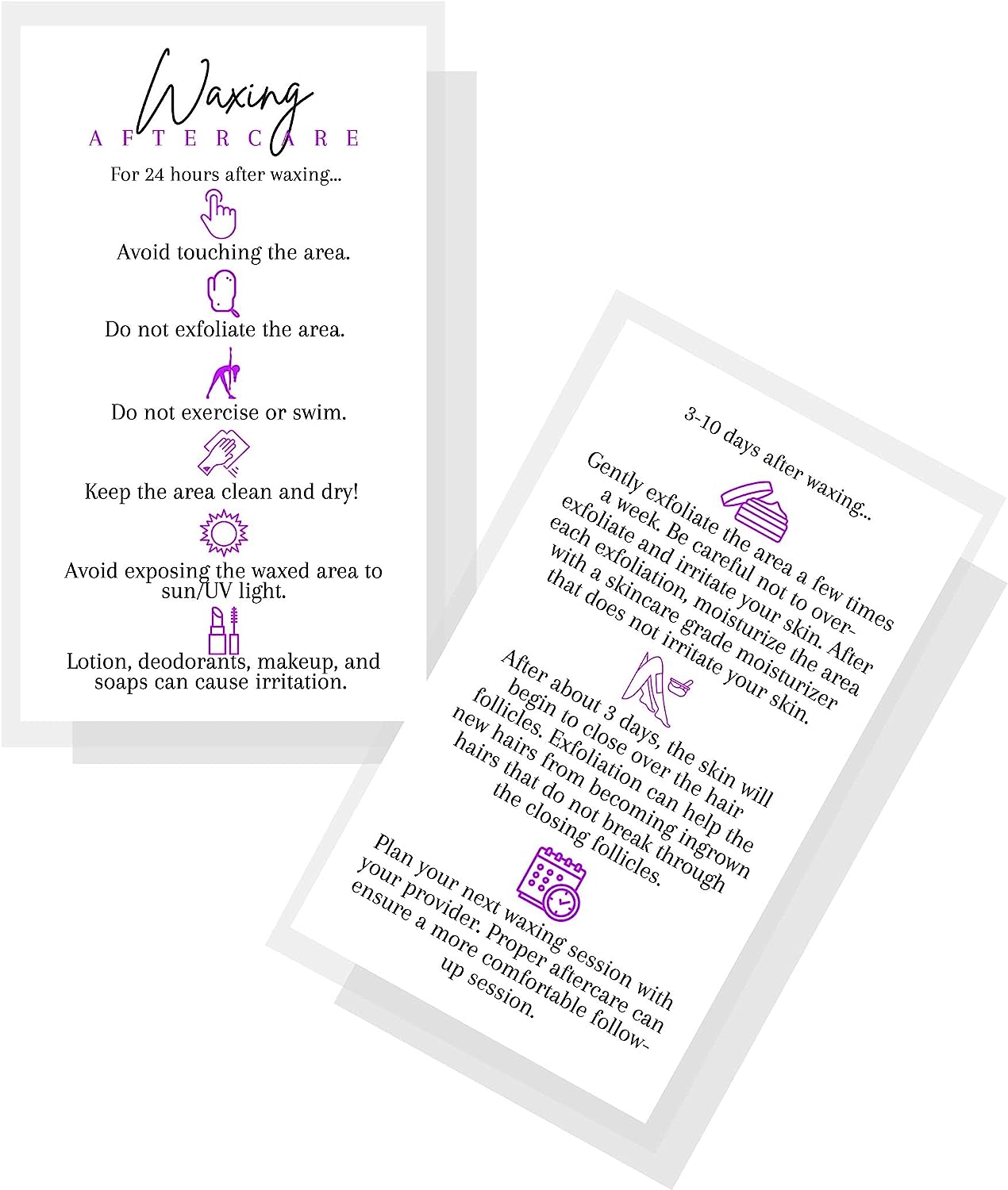 WHY BUY: As a certified esthetician offering waxing- you need the best aftercare instructions with as much detail as possible! Having them printed on this nice quality card stock makes it even more likely your clients will keep their instructions and read them thoroughly.