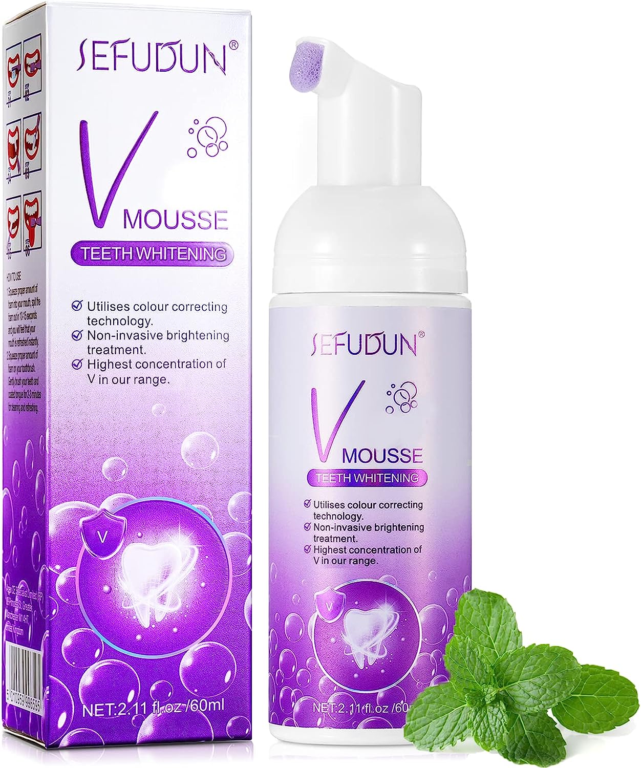 Natural Color-Correcting TechnologySimply use two pumps of Teeth Whitening Foam & swish for 15 secondsWhiten teeth, fresh breath, clean mouth, 3 in 1Gentle on Sensitive Teeth and GumsFresh, Crisp Flavor and ScentEnjoy a brighter, whiter, healthier-looking smile !
