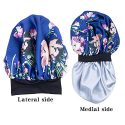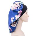 Wide Band Large Satin Bonnet Cap,Bonnets For Women,Silky Bonnet For Curly Hair,Women Hair Wrap For Sleeping,Double Layers (Royal Blue Flowers)