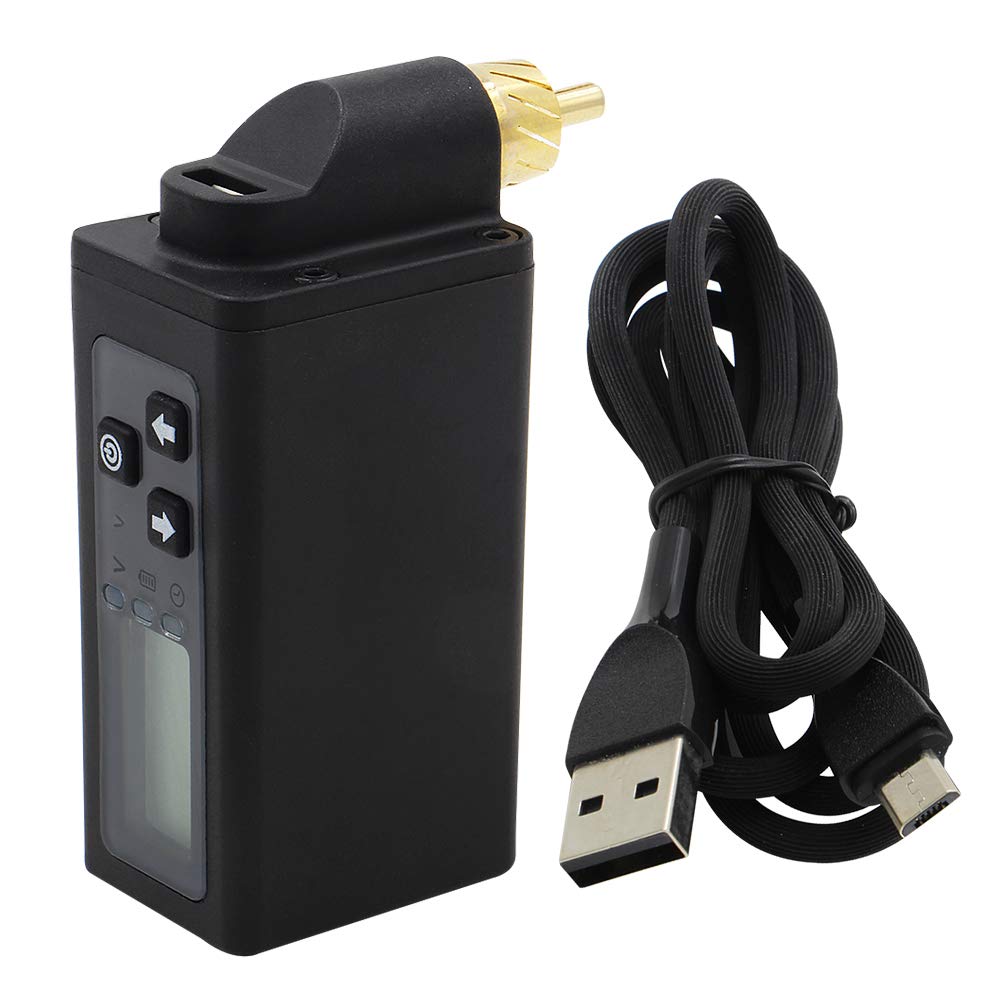 Wireless Tattoo Power Supply, Professional Mini Tattoo Power Supply Portable LCD Screen RCA Connector for Cartridge Tattoo Pen Machine Tattoo Supplies Product Description: Power supply life: 5~8 hours of tattooing Weight: 55 grams (1.