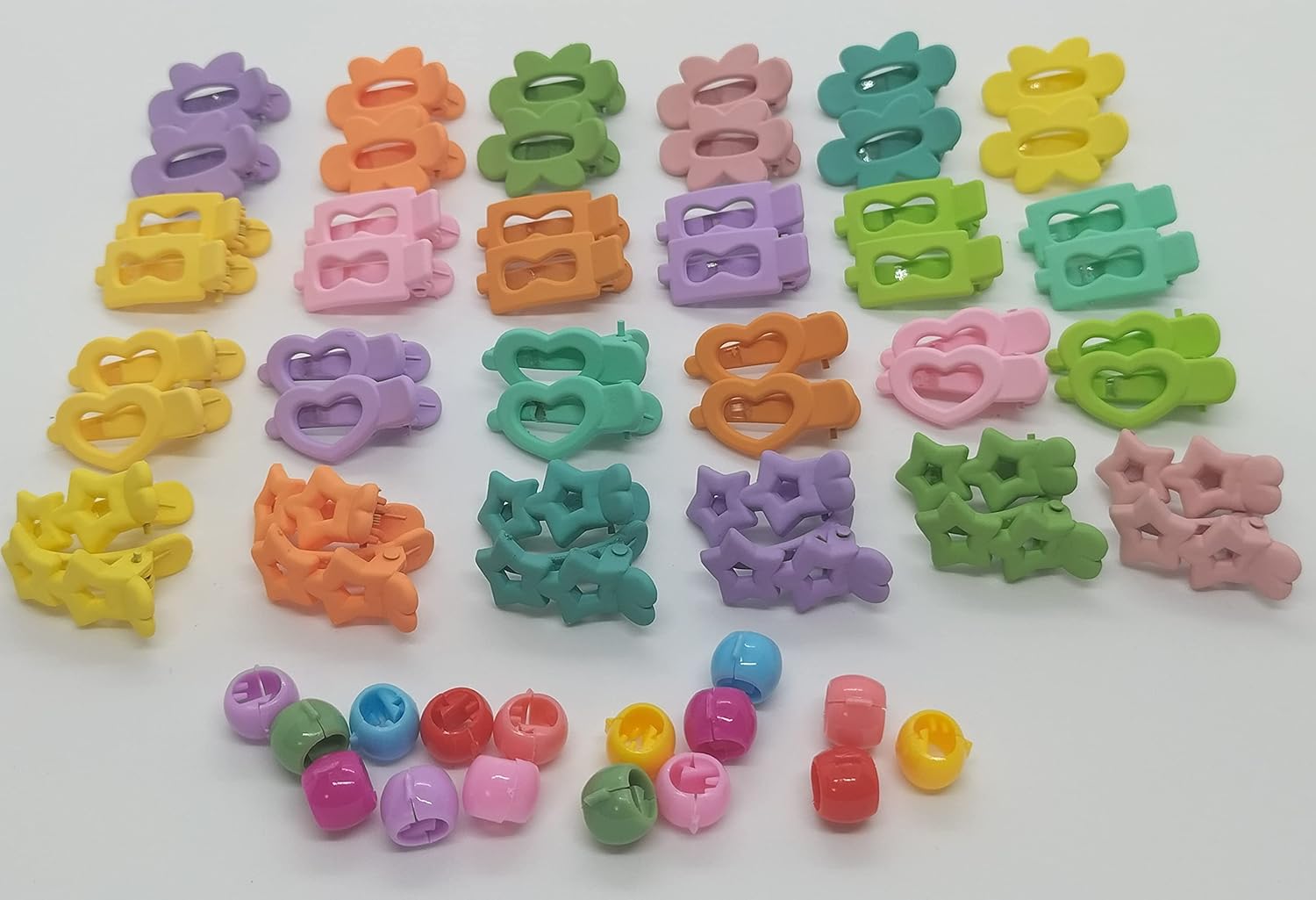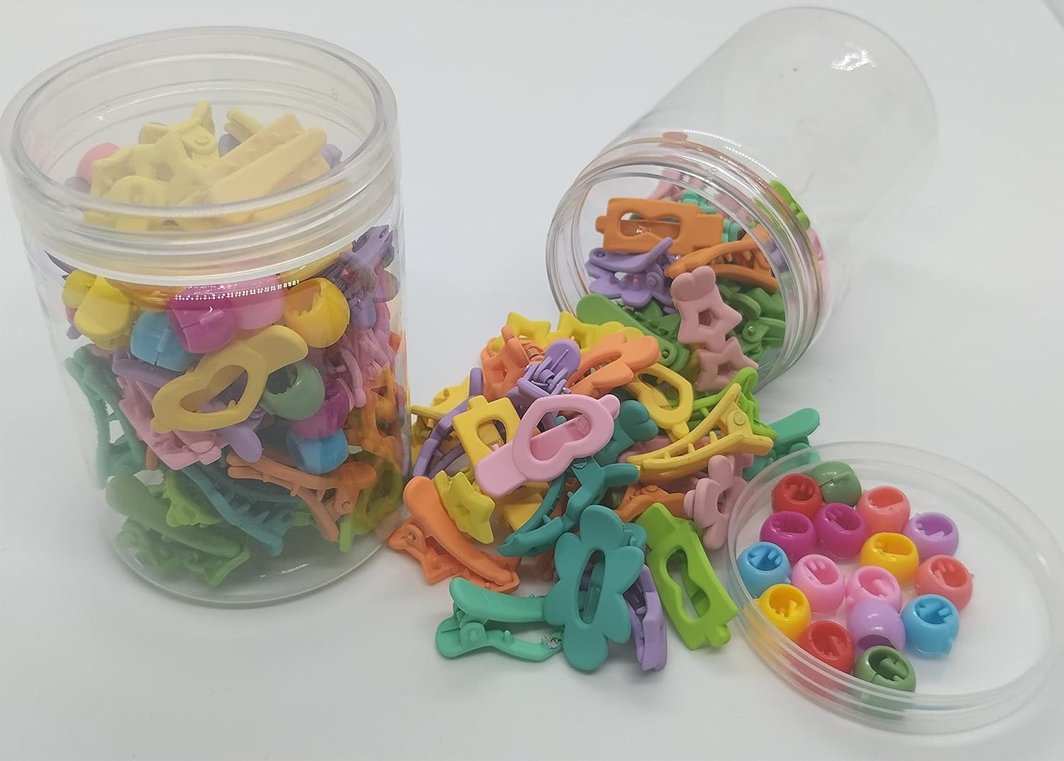55 inch Plastic Transparent Can Barrette Material: Plastic Barrette Color: Various colors(Pink, Purple, Green, Yellow, Orange) Barrette Shape: Flower, Star, Heart, Square, Bead Barrette Size: 1.