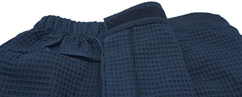 Women Waffle Spa Wrap Beach Shower Gym Adjustable Easy Touch Fastener Closure (Navy)