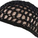 Womens Mesh Crochet Hair Net Crochet Cap Handmade Hairnet Snoods Cover Night Sleeping Hair Net Hat Women Bonnet Head Scarf Cap(Black)