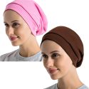 No tight and no-slip. LITTLE BIG,suit for medium to large. You can also cover your eyes at night if you like big ones. Sleeping cap are the perfect accessory for caring your hair while helping you remain stylish, and work for tangles and dry hair.