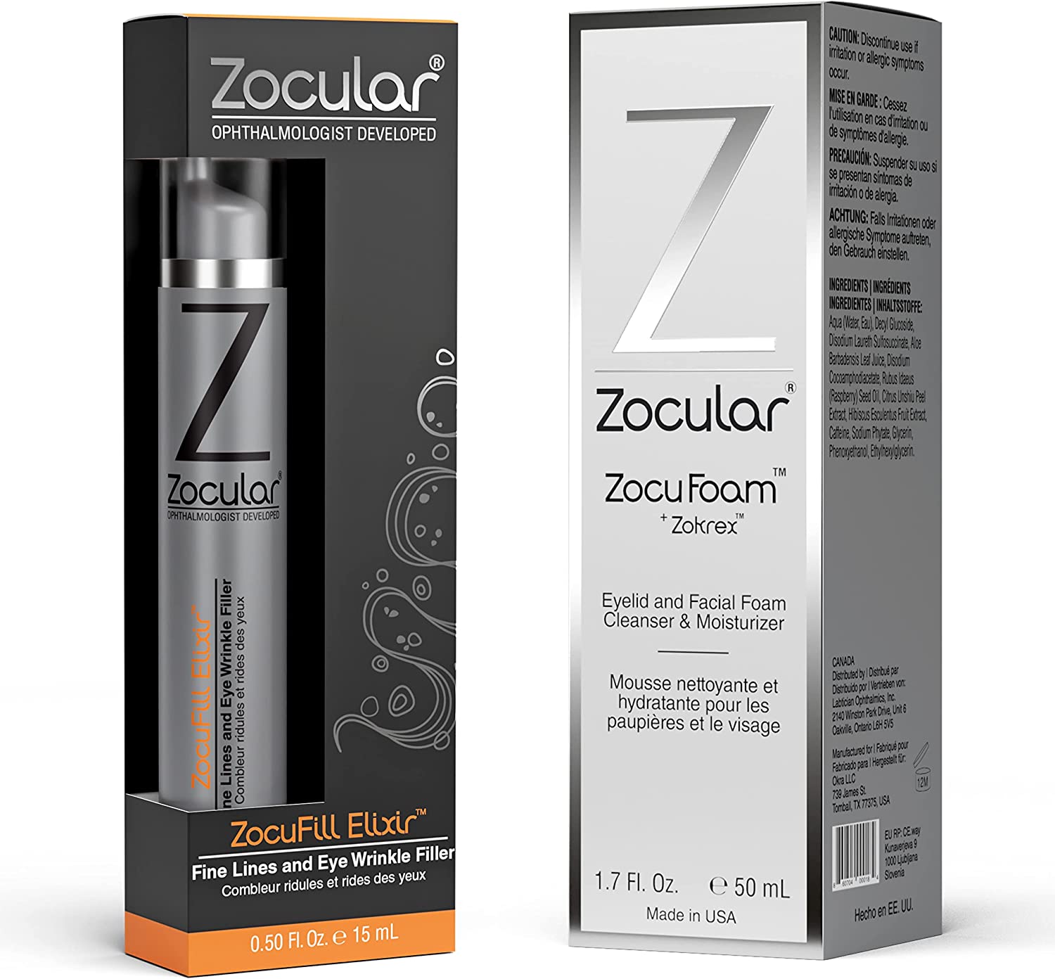 Zocular ZocuFoam Eyelid Cleanser + Zocufill Elixir Eye Gel and Face Serum Bundle