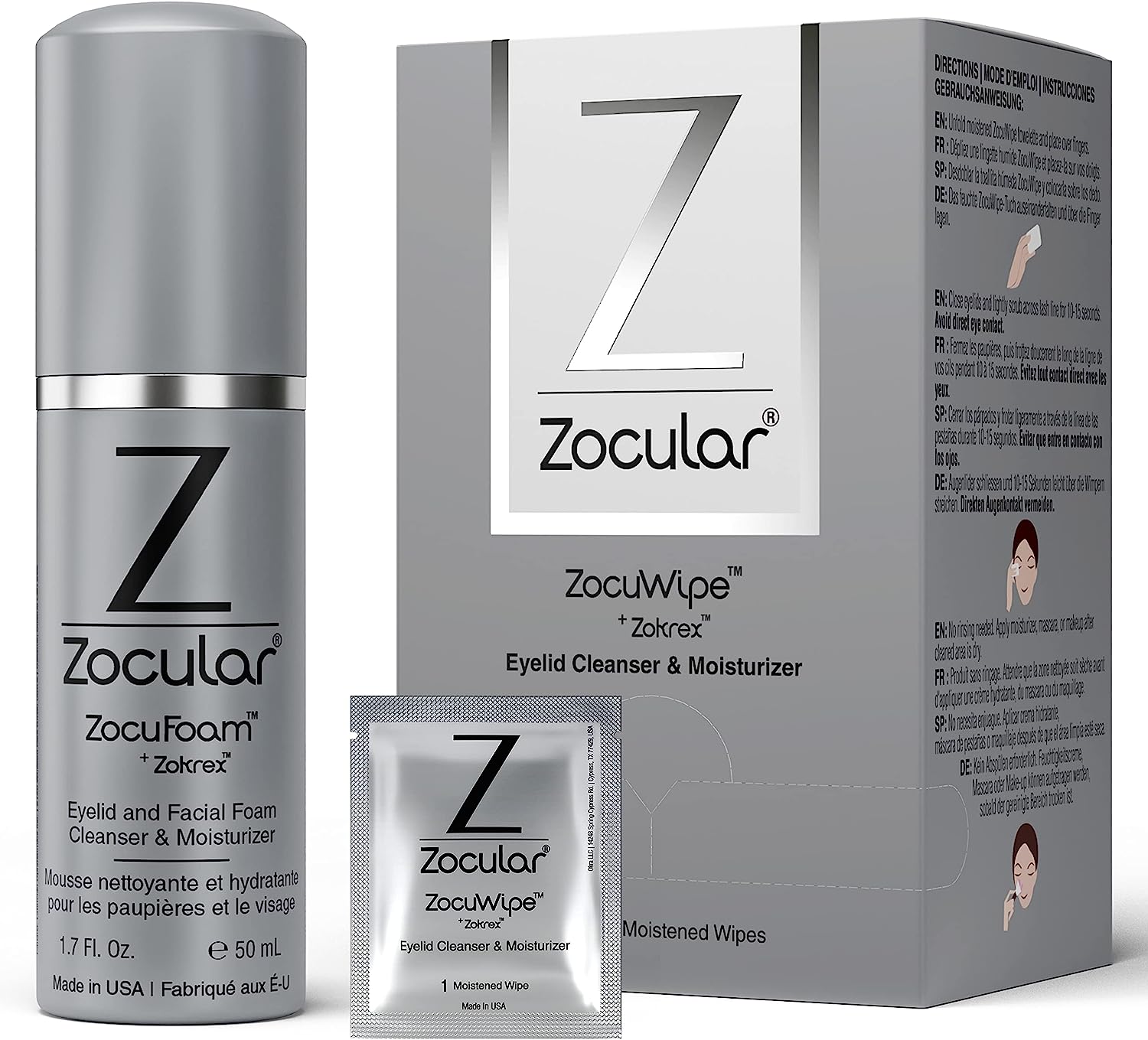 Zocuwipe Eyelid Wipes with Okra Complex – Eyelid Cleanser and Moisturizer Pads 40ct + ZocuFoam Eyelid Cleanser Bundle
